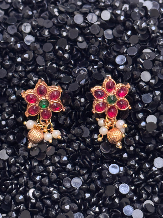Kamala intricately crafted Jhumkis with Rice Pearl dangles