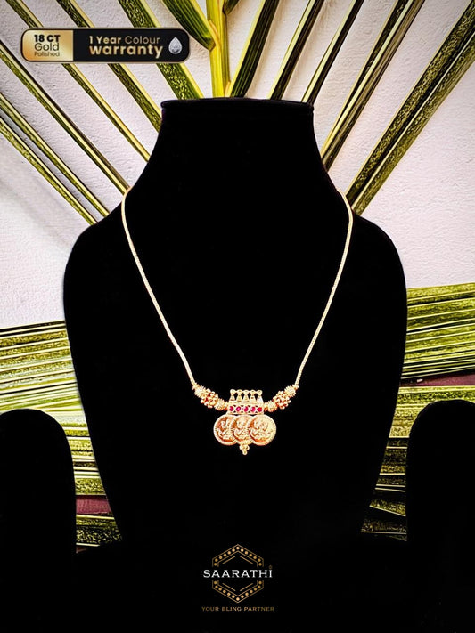 Simple yet Elegant 18CT Gold-Plated Reversible Indira Necklace with Green stones and Lakshmi motifs