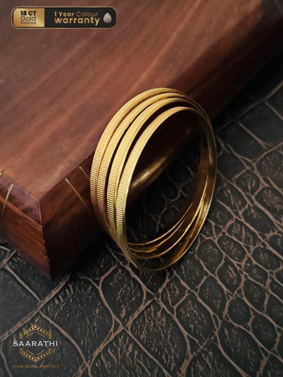 18CT Gold-Polished Bangles- Set of 4