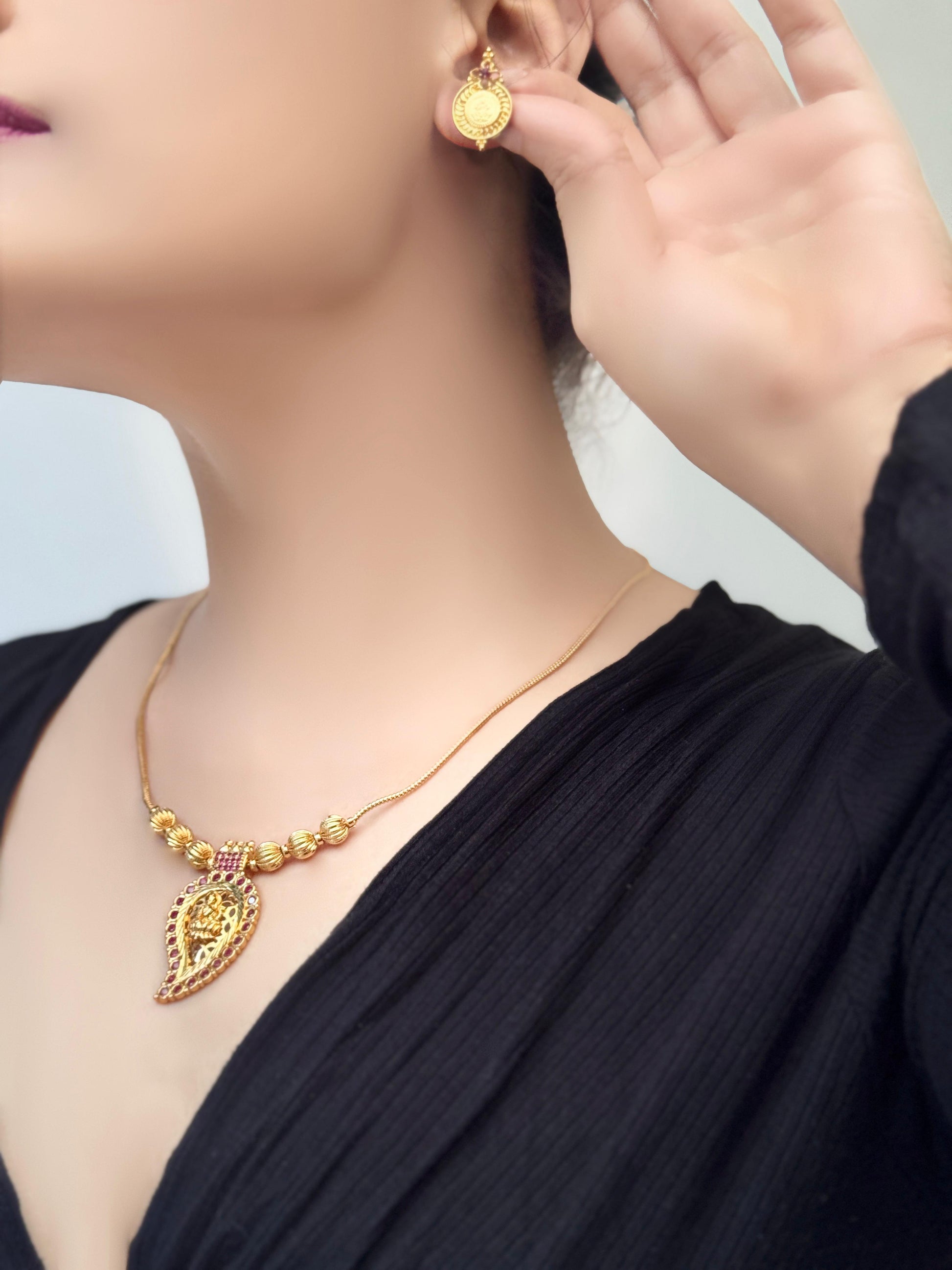 Annapurna Maanga Mala with Laxmi Motifs and Matching Earrings