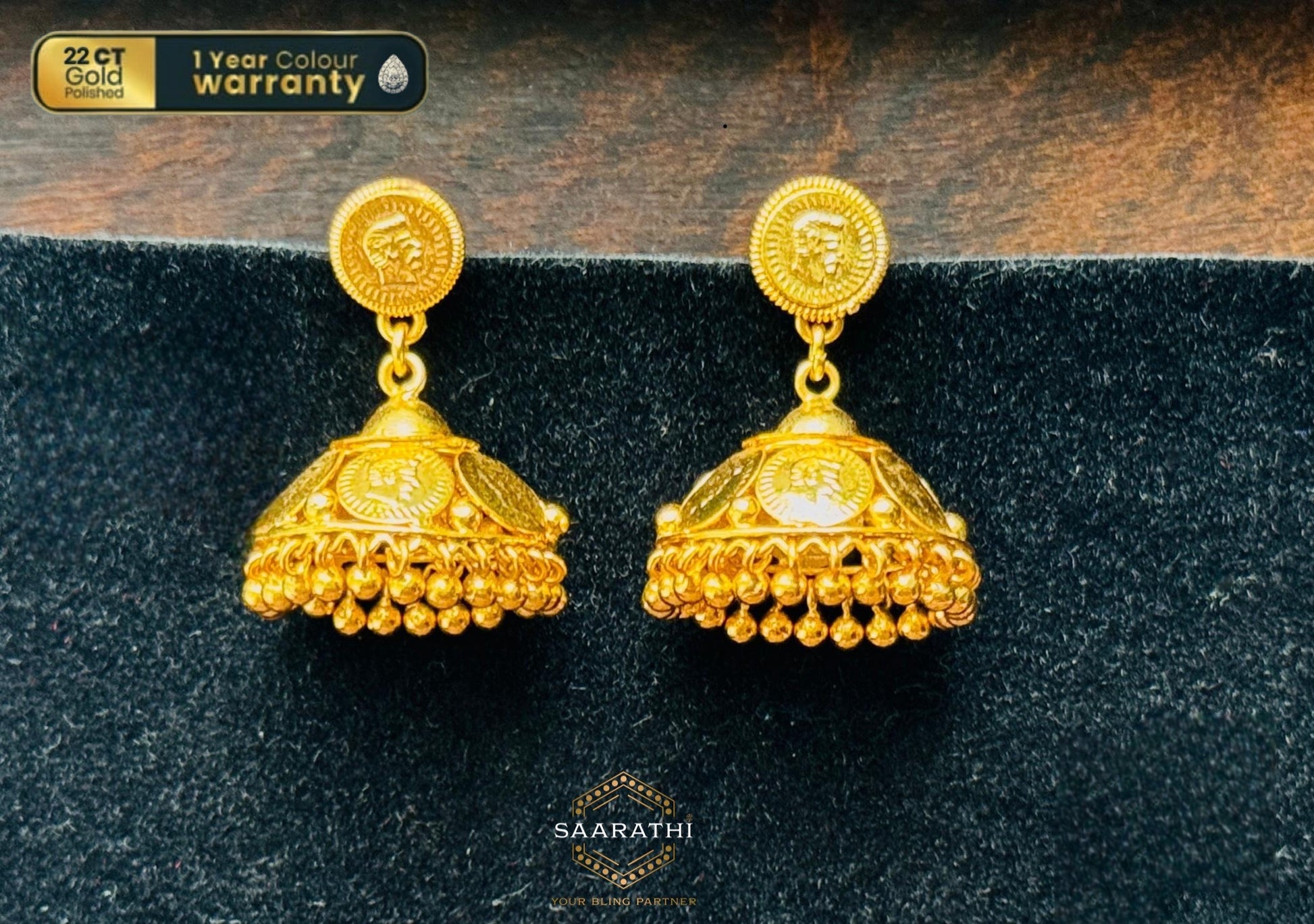 Elegantly Crafted 22CT Gold-Plated Kaashu/Coin Jimikkis/Jhumkas