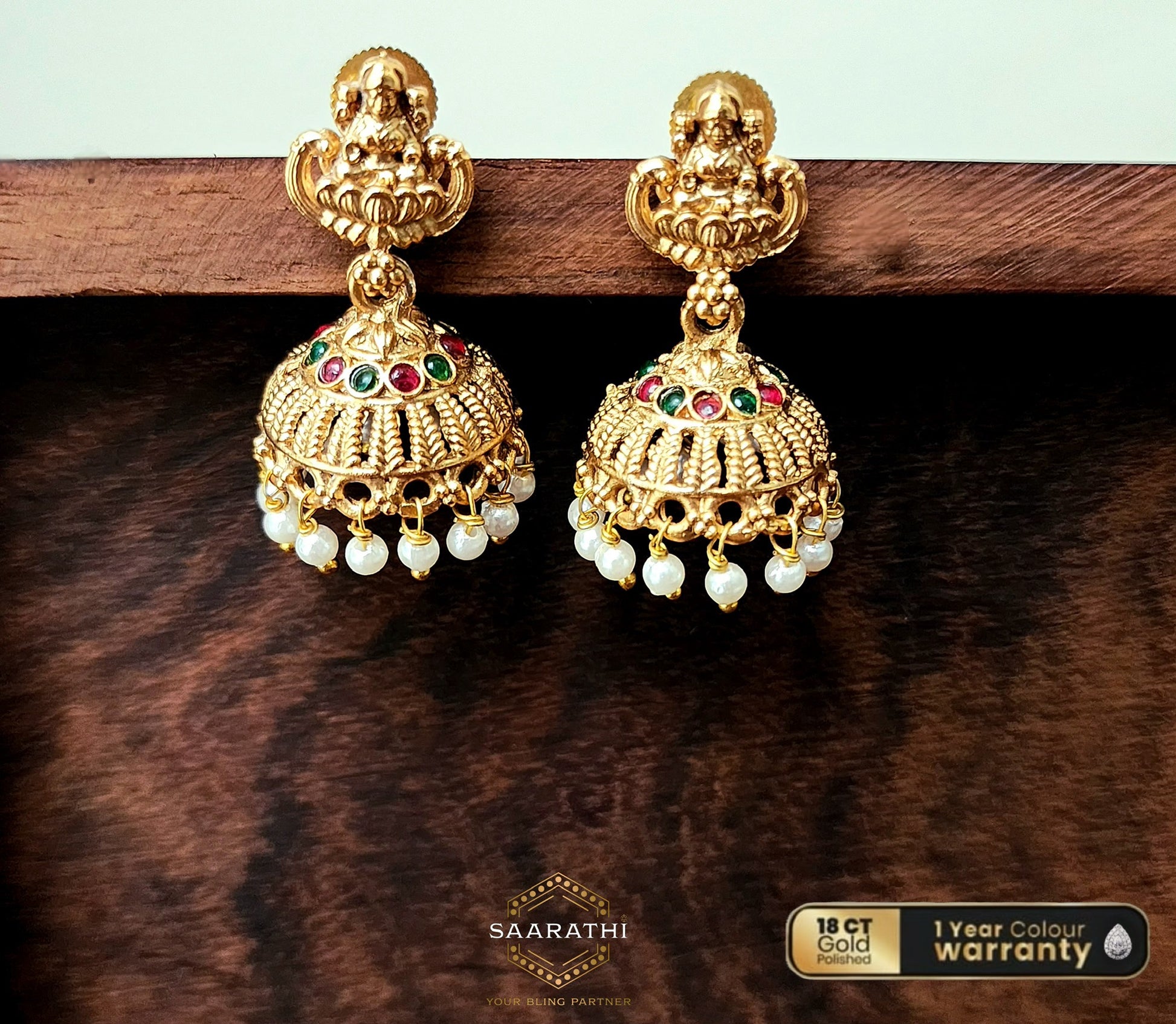Ethereal 22 CT Gold-Plated Laxmi Pearl Jimikis/Jhumkas