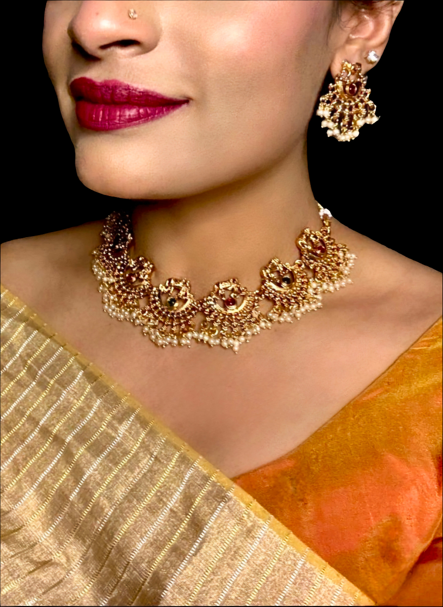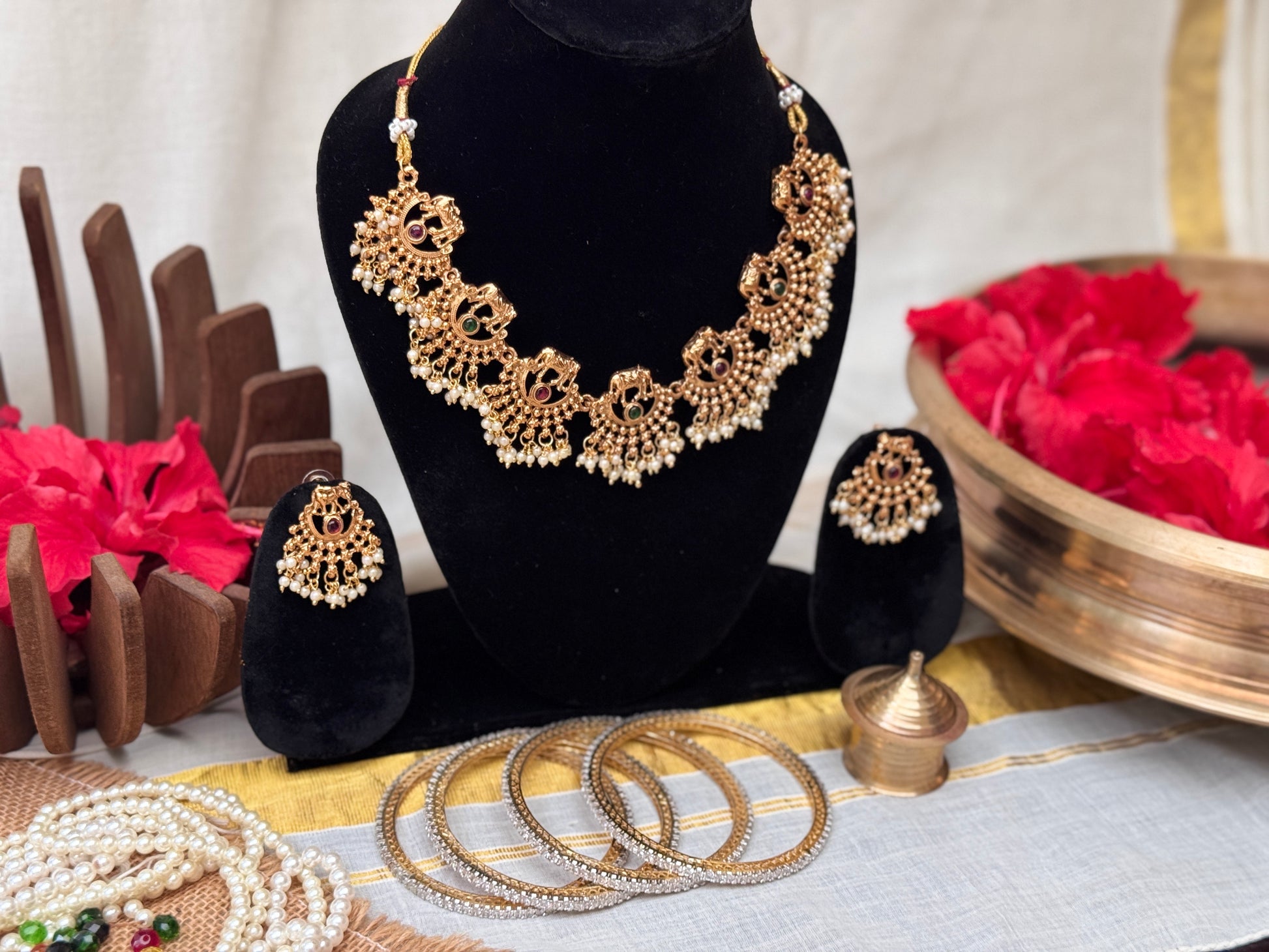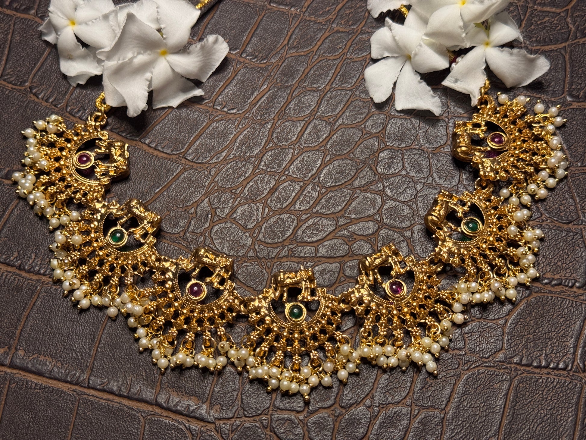 Exquisite Chandrakala Pearl and Gold Necklace set